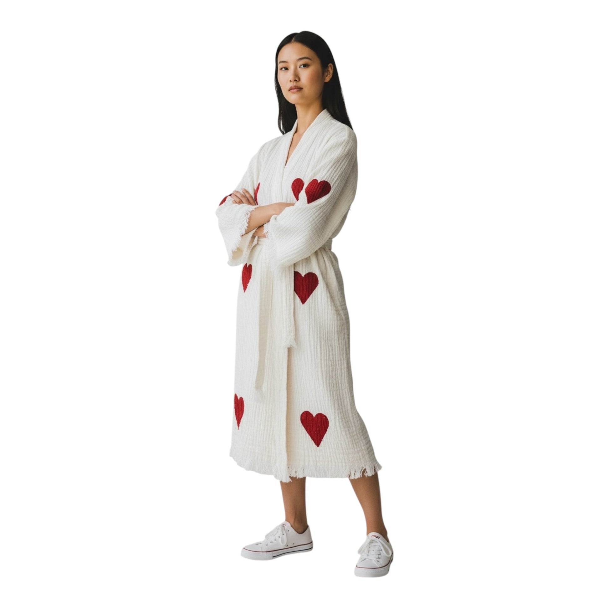 Red Heart Kimono Robe with Pockets %100 Cotton XS-L(0-14)